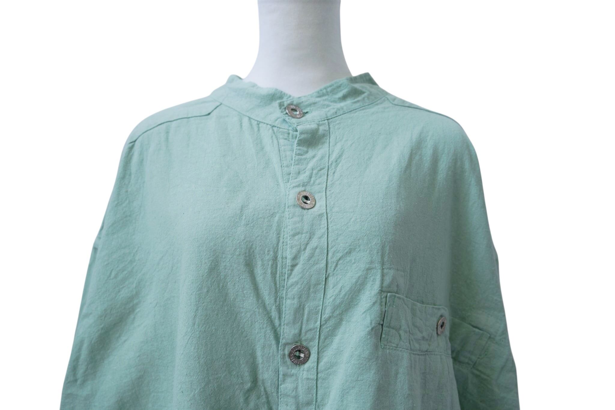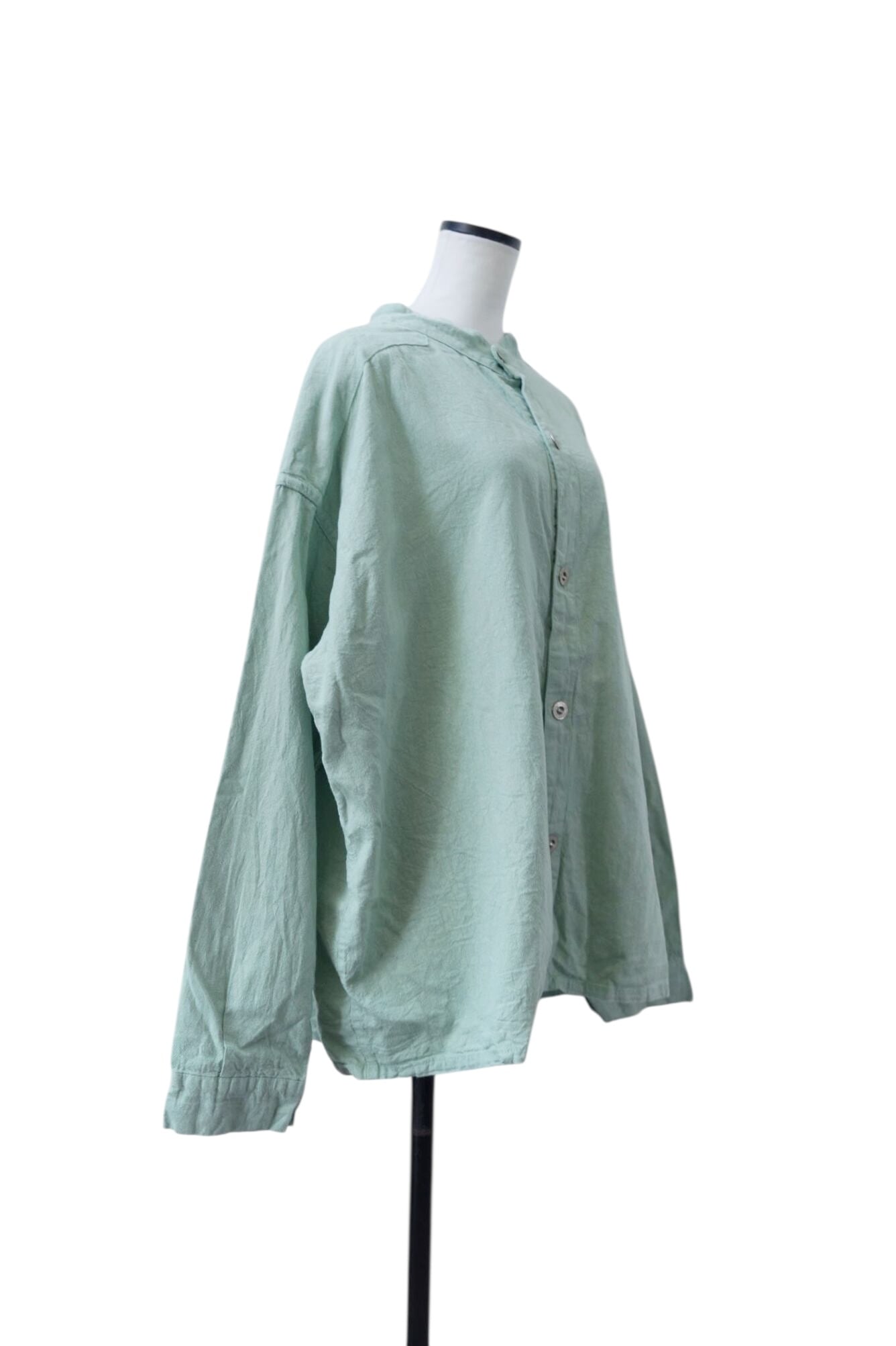 リネン地の生地感に合う染め上がりで、ボージョンジャケットのゆったりとしたシルエットとカラーがマッチしています。
