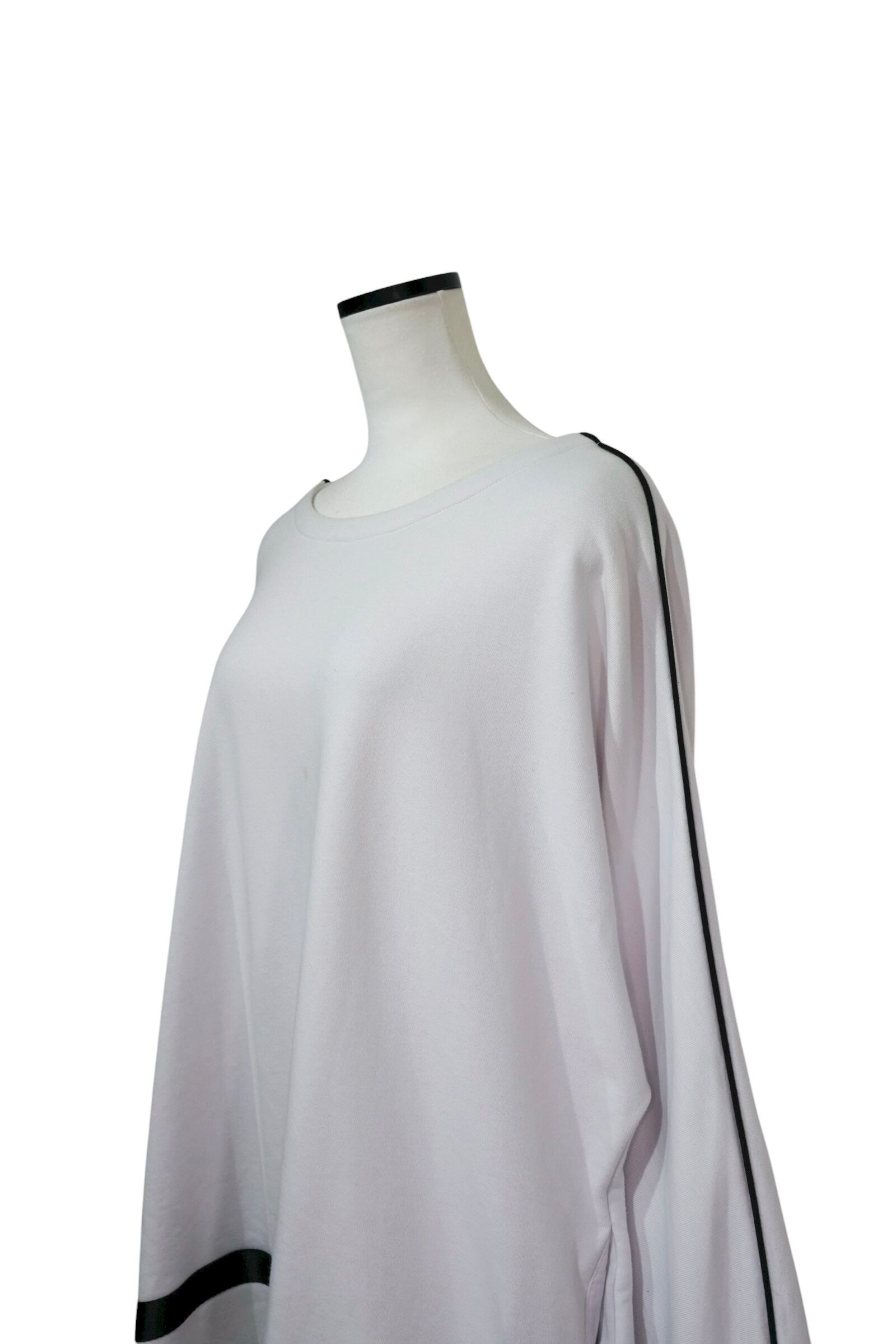 ボートネック風の首元が抜け感を与え、ユニセックスで着用可能。