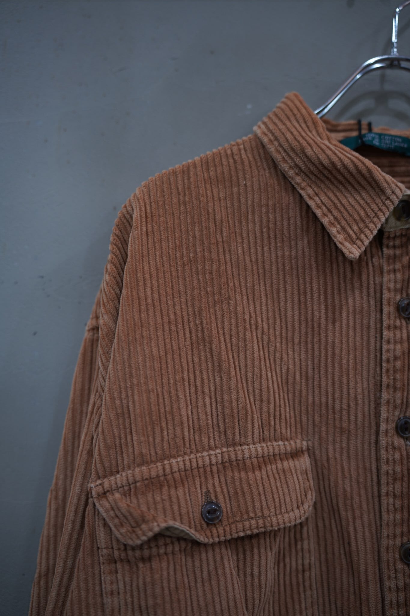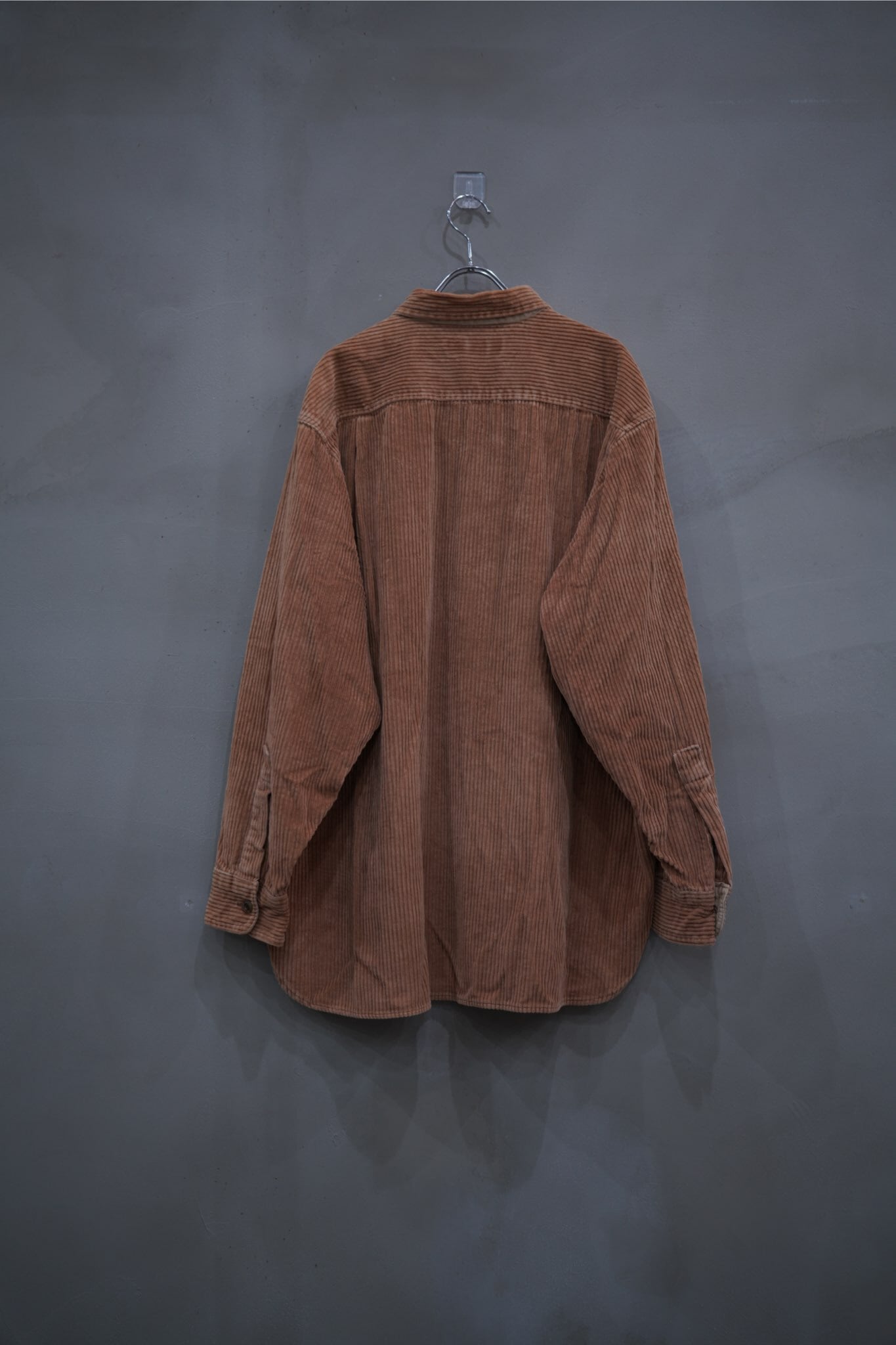 深みあるブラウンのコーデュロイ生地が、太畝ならではの陰影を放ち、シルエットに質感のアクセントを加えます。ラフになりがちな素材を、あえてサイズ感を整えて、モードな印象に昇華。ユーズドならではの“唯一無二の味”も魅力のひとつです。