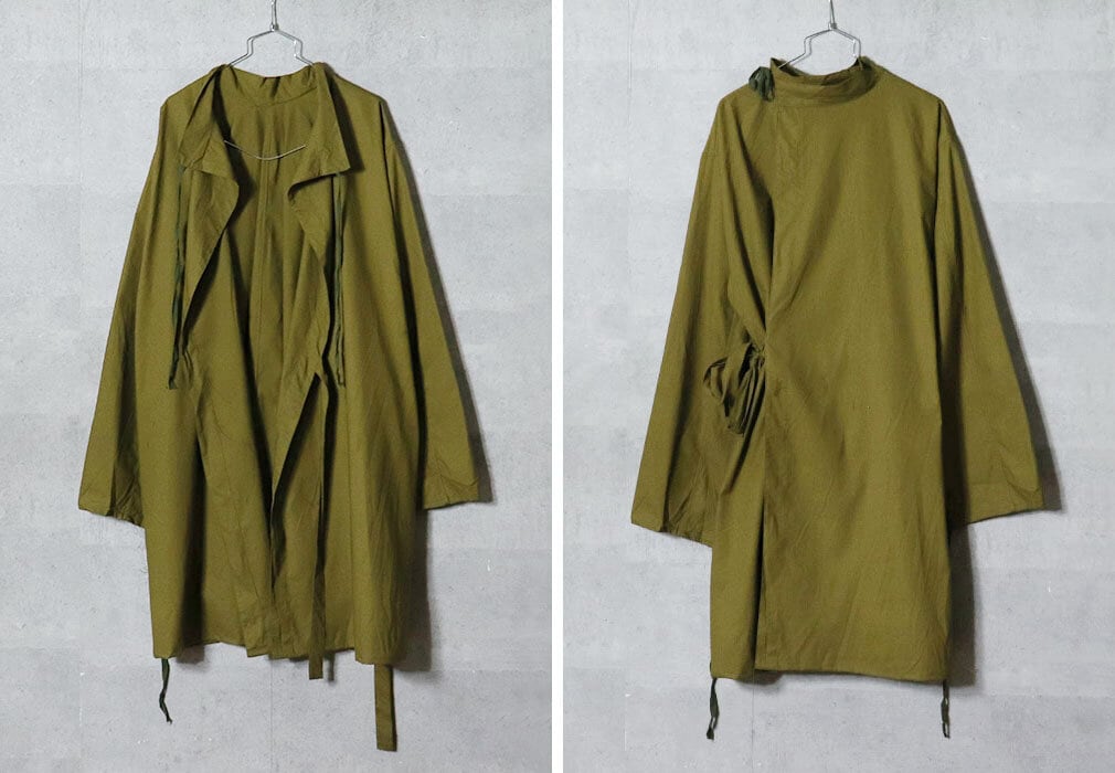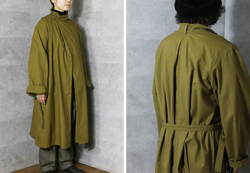 着丈が長く、生地感は粗目の薄手コットン地になり、メディカルローブなだけあってとても羽織やすいアイテムです。