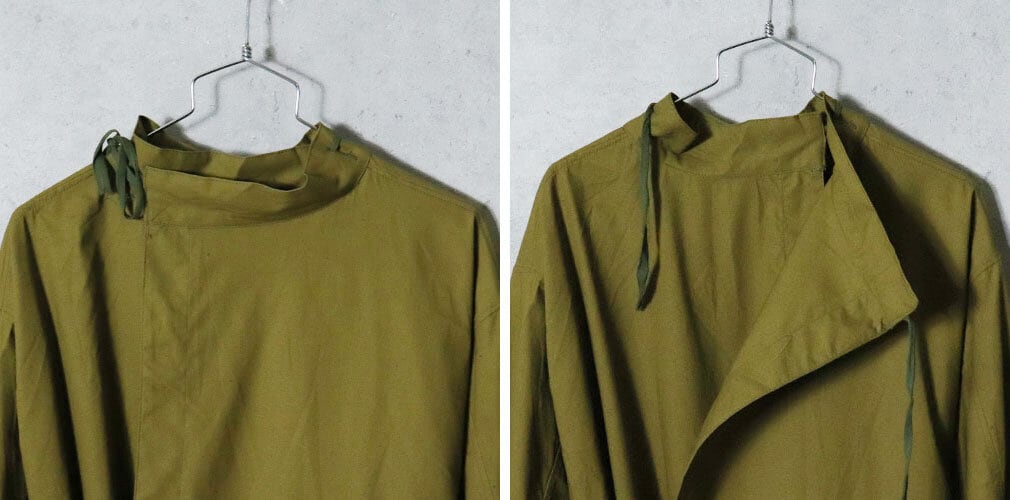ウエストは紐で縛ることができ、袖も同じく縛ることが出来るので着方次第で様々なスタイリングが可能です。