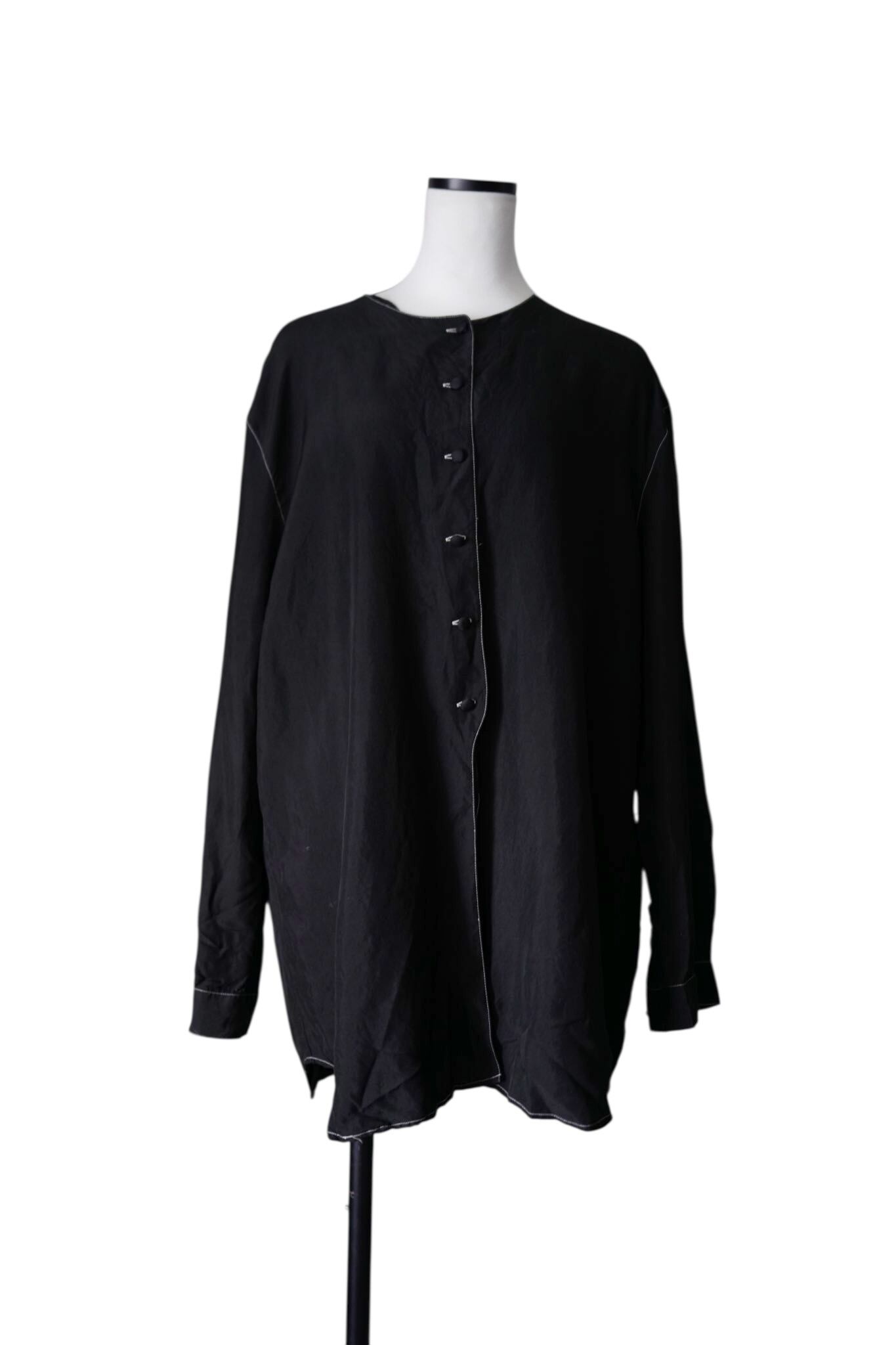 • ボトムスにはブラックレザーあるいはワイドスラックスを合わせ、同色トーンで統一されたミニマルモードの完成に。